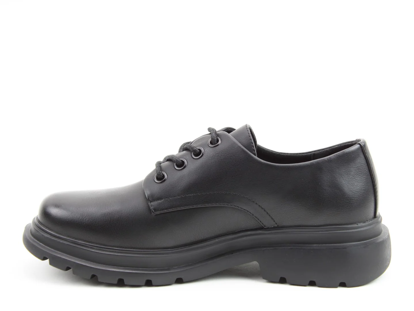 Introducing Cove - your go-to vegan-friendly lace-up shoe for smart comfort and everyday ease. Designed with a smooth black upper and chunky sole, Cove offers a modern take on classic school or work shoes. Whether worn in the office or on the weekend, it delivers comfort and confidence in every step thanks to a cushioned removable memory-foam insole and super lightweight design.