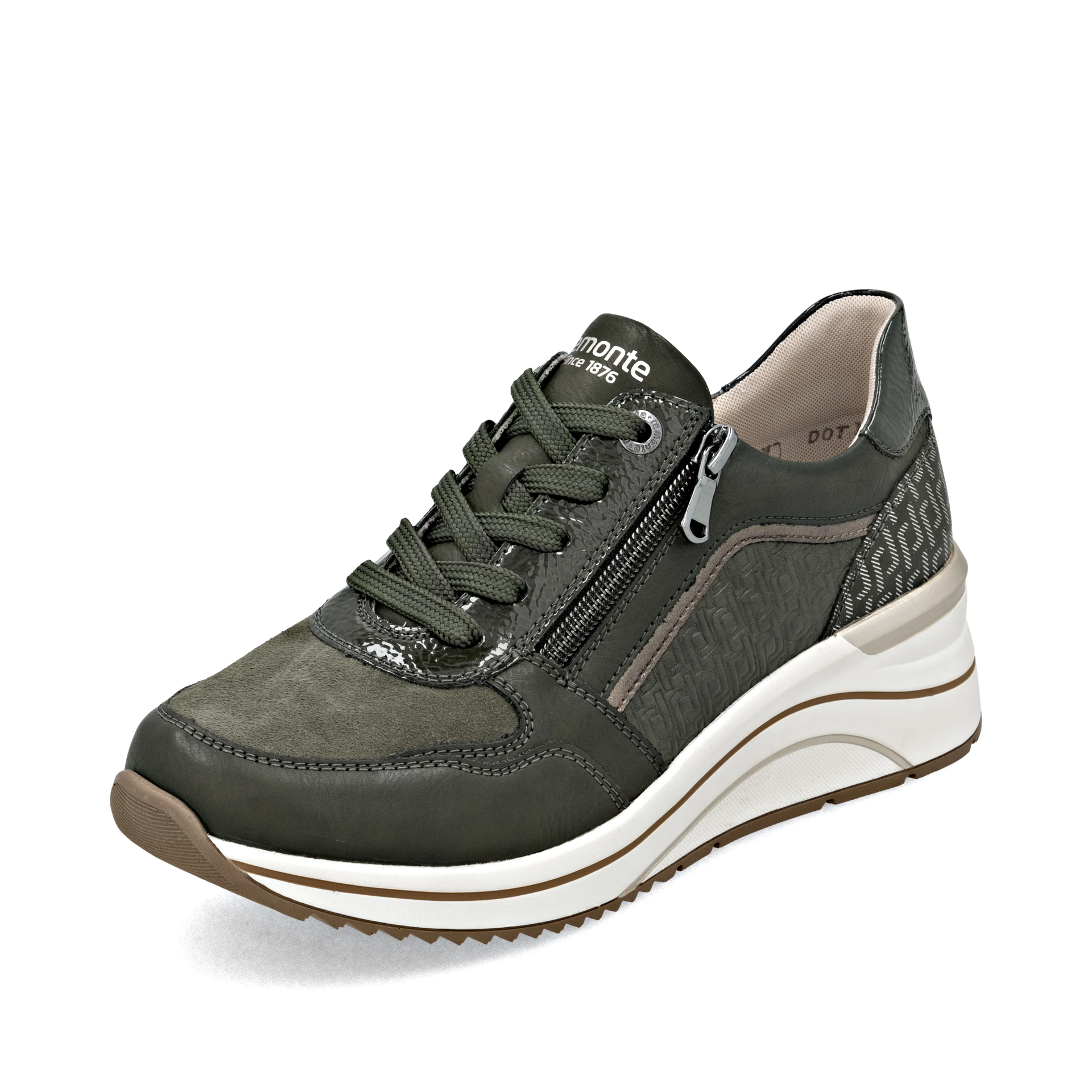 Happy feet, happy life! With these green beige remonte low-top sneakers, coolest style and maximum comfort are guaranteed at every step of the way. Despite the lacing, the shoe can be easily closed by the zipper. The Lite 'n Soft technology with its ultra-light sole and padded and removable insole ensures a comfortable feeling. The extra width gives you more space in the shoe. The sneakers are equipped with a light microvelour lining. That means: endless strolling is no problem at all!