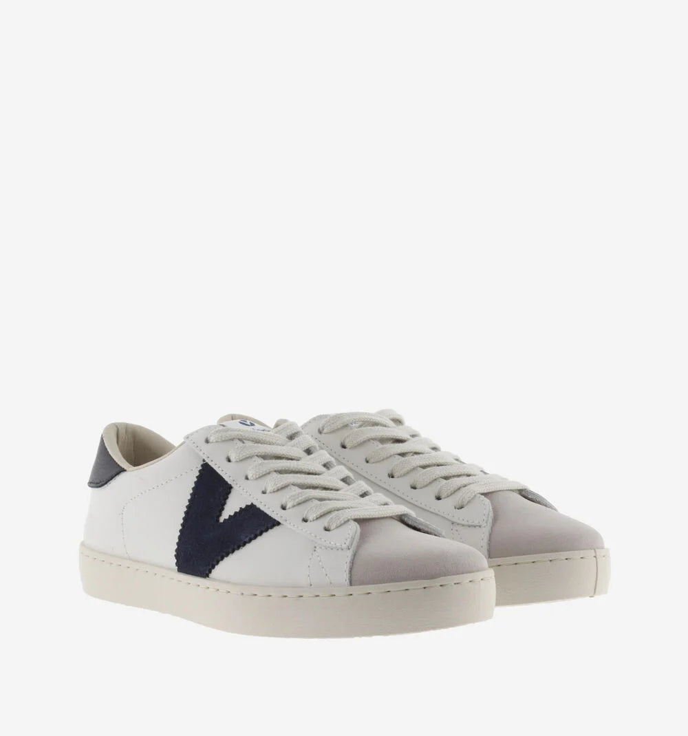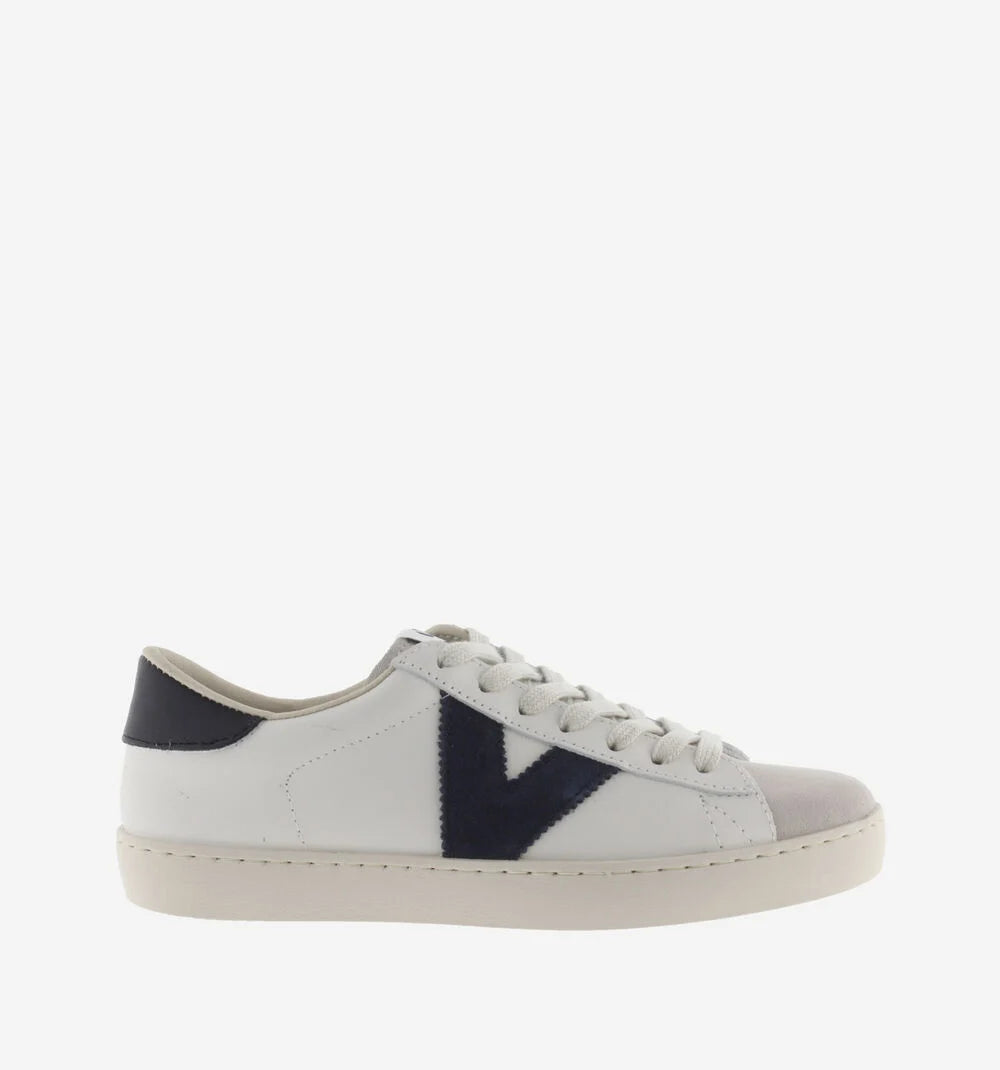 Women's trainers in high quality soft leather, made in Spain. They have the LWG (Leather Working Group) silver distinction, which guarantees a responsible tanning process, with an efficient use of water, energy and sustainable waste management. Coloured details on the V at the side and back panel and split leather toe. Soles made from vegetable oils rather than mineral oils, reducing their environmental impact.